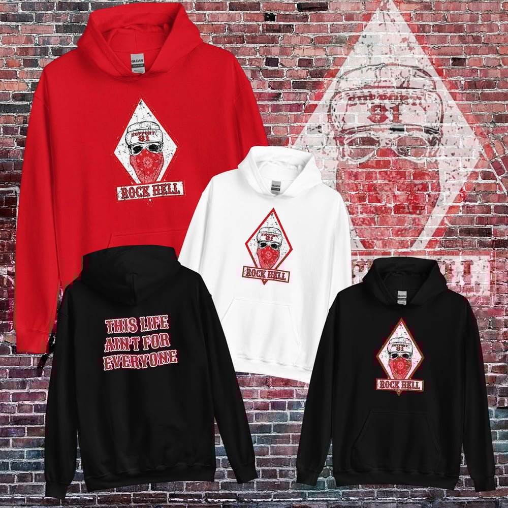 From the Rock Hill Support Archives, the ORIGINAL GANGSTA is back! This hoodie is a great choice for cooler evenings and to keep in your saddle bag! Pre-shrunk cotton-poly blend to maintain shape and wear harder.